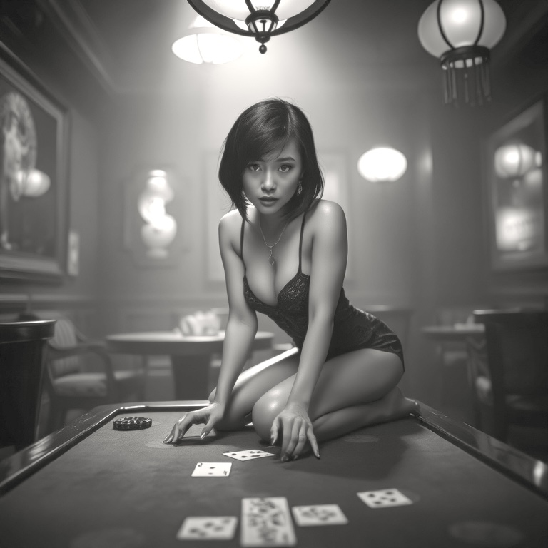 En revanche, ces IA parviennent à générer des scènes époustouflantes, comme par exemple celle-ci, sur la base d'une requête du genre; film noir, club de jeu à Shanghai, ambiance Années 30, Suzie Wong sur une table de jeu, ...
