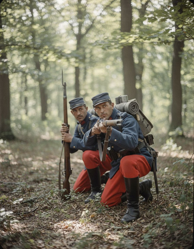 Ce que je trouve passionnant avec les rendus de l'IA, c'est la possibilité de réécrire des moments du passé, comme si on venait de les photographier. L'impression est que la caméra remonte le temps. Et au contraire des re-enactments modernes, qui ne sont jamais totalement convaincants (tissus trop clinquants, acteurs trop âgés pour le rôle, ou demi-obèses, iPhone dans la poche...), ni même les films du cinéma et de la télévision, on montre de vrais humains de l'époque, crédibles, qui portent leurs uniformes de manière plausible, dans une lumière d'époque.