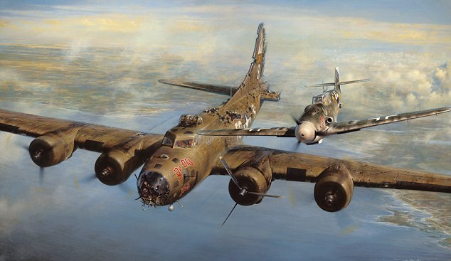 En ces temps de haine et de mort, une incongruité… Alors qu’il rentre vers sa base, le leutnant Franz Stigler croise un B-17 fortement endommagé, le B-17 F Ye Olde Pub, piloté par le sous-lieutenant Charlie Brown. Le bombardier, le nez fracassé, ses commandes en partie hors service, son armement pour ainsi dire neutralisé (3 mitrailleuses opérationnelles sur 11), ses membres d’équipage presque paralysés par le froid de l’altitude quand ils ne sont pas blessés, constitue une proie facile. S’il vole encore droit, c’est qu’il est sur pilote automatique : Brown, manquant d’oxygène, a pendant un moment perdu conscience. Une victoire facile…mais, loin de l’achever, Stigler va plutôt accompagner l’épave volante, en tentant à plusieurs reprises de convaincre son pilote de se poser en Hongrie avant finalement d’abandonner la poursuite. Sans oublier de saluer ! L’incident restera longtemps secret – les Américains n’avaient aucun intérêt à en faire mention, tandis que Stigler, lui, risquait carrément la cour martiale. Brown et lui se retrouveront finalement en 1990 au Canada, après des recherches lancées par l’Américain – lequel n’habitait à ce moment qu’à 350 kilomètres de son ancien ennemi ! Aujourd’hui, la photographie des deux aviateurs devant une vue d’artiste de Ye Olde Pub est bien connue des amateurs.