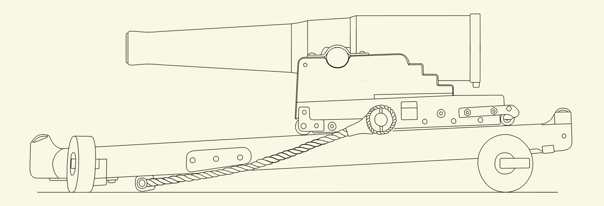 Le canon semble reculer sur l'affût qui peut pivoter sur le pont. J'imagine que les images le représentent en position arrière après le départ du coup et avant remise en batterie qui se fait probablement naturellement avec la pente.