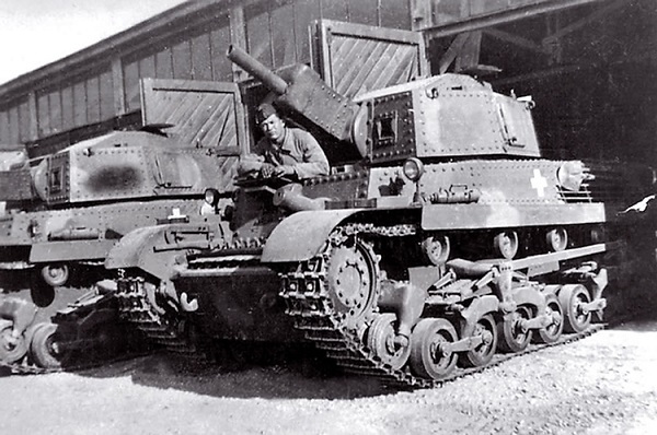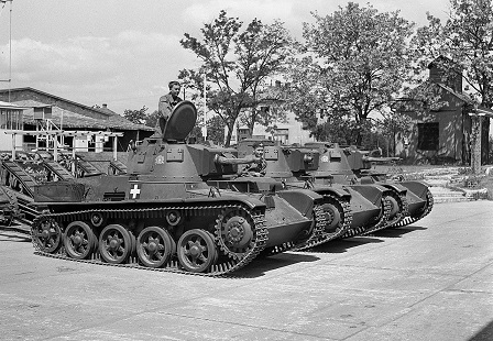 4- Dont une chenillette lance-flamme fournie à des fins d’évaluation et que l’on avait “oublié” de rendre à Rome. Ces engins souffraient d’une très mauvaise finition (les bandes des roues se désagrégèrent au bout de quelques kilomètres lors de l’entrée en Tchécoslovaquie en 1938 !) ; ils furent fort heureusement retirés du service en 1941 et ne connurent guère d’engagement que pour la prise de la Transcarpathie, face aux LT vz.35 slovaques. Contre ces derniers, il fallut improviser et la Honvèd dut faire venir une équipe antichar… en réquisitionnant un taxi. Les Hongrois feront bon usage des petits blindés capturés à cette occasion (voir plus loin).