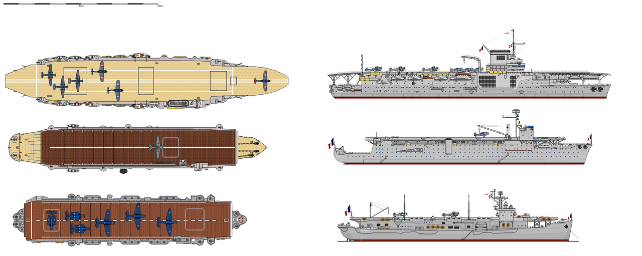 Pour illustrer la taille des ponts d'envol voici un petit comparatif entre Béarn, Cdt Teste et Lafayette respectivement...