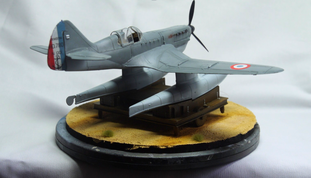 Dewoitine HD780 Senifer 1/48. Le HD780 est un prototype d'hydravion de chasse pour croiseur, proposé par dewoitine en 1938 en remplacement du catastrophique Loire 210, cloué au sol car ses ailes se détachaient lors des manoeuvres à haute contrainte. Sous ses dehors très nets de Dewoitine 520 navalisé, il s'agit d'un avion profondément remanié, avec un nouveau dessin d'aile, des flotteurs induisant un renforcement structurel - d'où un armement réduit - et quelques éléments type radeaux. L'appareil se révela vite être un veau, faute de moteur plus puissant destiné à supporter la surcharge comme la trainée complémentaire. En conséquence, il ne retint pas l'attention de la Marine Nationale, et il est même avéré que le pauvre HD780 ne déjaugea jamais, en dépit de quelques tours d'étang de Berre. Il disparait ensuite lors de la débacle de 1940, probablement ferraillé.